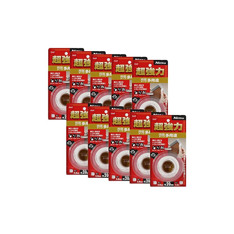 Nitoms T4541 Ultra Strong Double Sided Tape, Multi-purpose, 0.8 inches (20 mm) x 3.9 ft (1.5 m), Pack of 10 Rolls