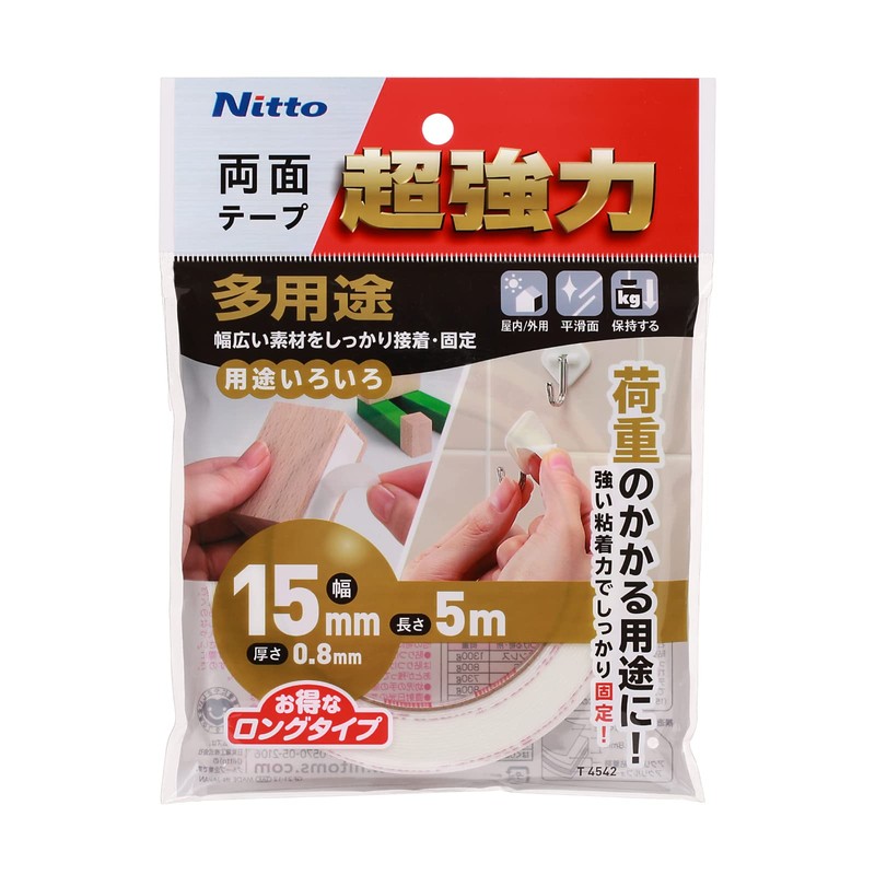 Nitoms T4542 Super Strong Double Sided Tape, Multi-purpose, 0.6 inch (15 mm) x 16.4 ft (5 m)