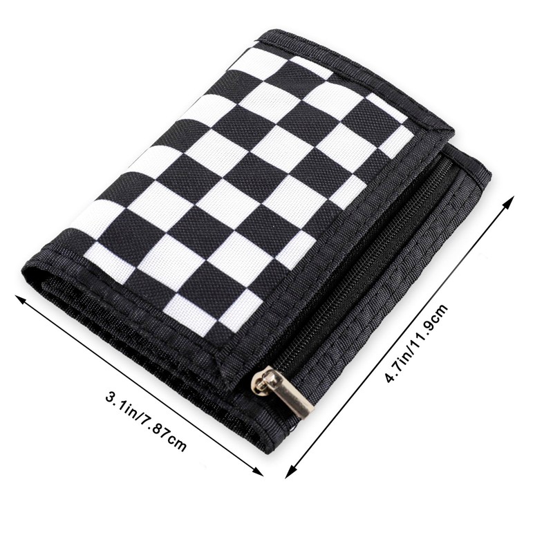 Nitort Wallet,RFID Trifold Canvas Outdoor Sports Wallets for Kid,Lovely and Novelty Wallet with Zipper for Kids- Front Pocket Wallet with Magic Sticker(Black Chequer KW01)