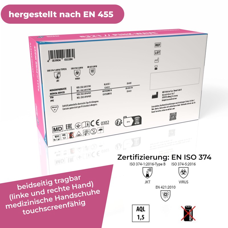 - Can be worn on both sides / powder-free / micro-roughened fingertips / touch screen capable / colour pink (colour code 6300)