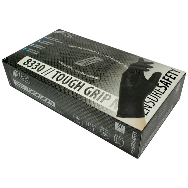Nitras Disposable Gloves Black Tough Grip Pack of 50 in Box Size XL