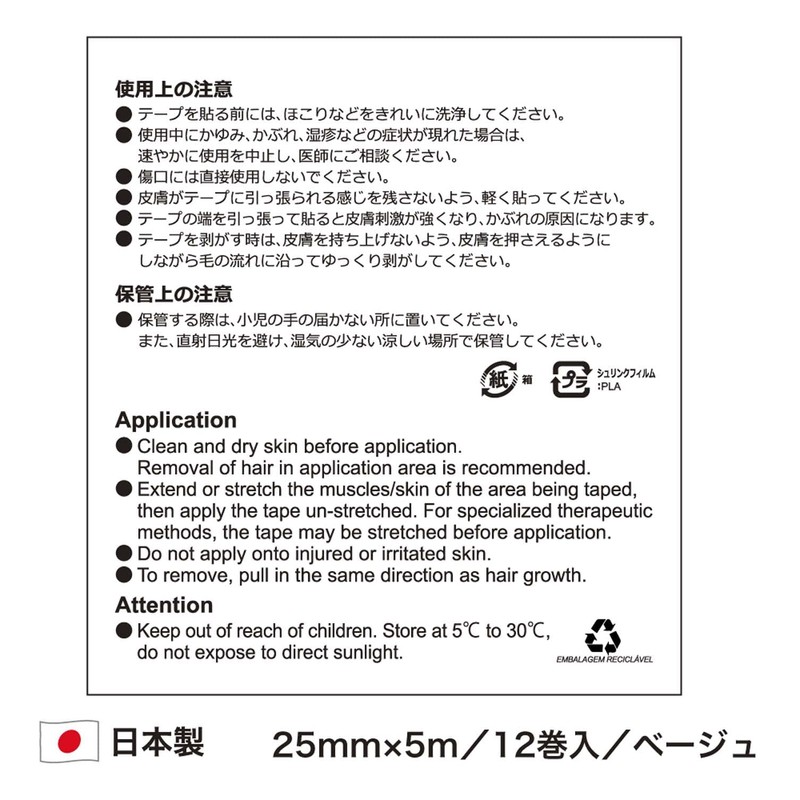 Nitreat Kinesiology Tape, NK-25, Width 1.0 inches (25 mm) x Length 16.4 ft (5 m), 12 Rolls