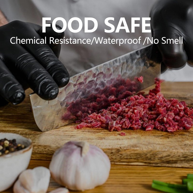 - Practical Black Nitrile Gloves - Black color conceals dirt, an excellent choice for food service in restaurants. Also a great pair of work gloves for automatic, mechanics, hospitality staff, experiment, painting, household cleaning, etc.