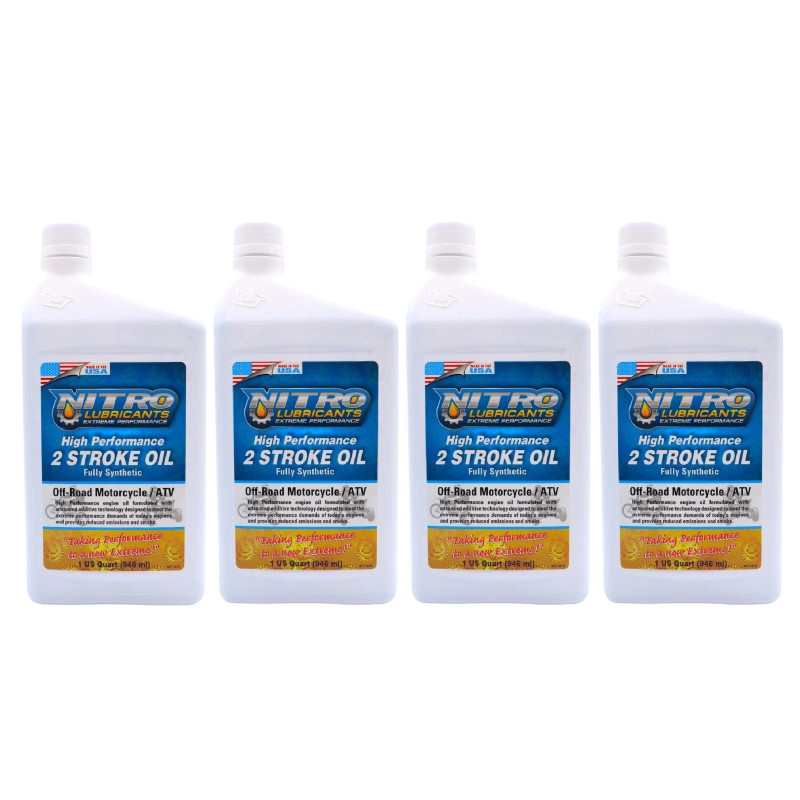 Nitro Lubricants 2 Stroke Engine Oil is a high-performance, semi-synthetic formula designed for off-road motorcycles and ATVs. Made with top-quality base oil and advanced additive technology, it delivers outstanding performance and protection for today’s high-performance 2 stroke engines. Formulated to meet the extreme demands of racing and off-road applications while reducing emissions and smoke. Made in USA.