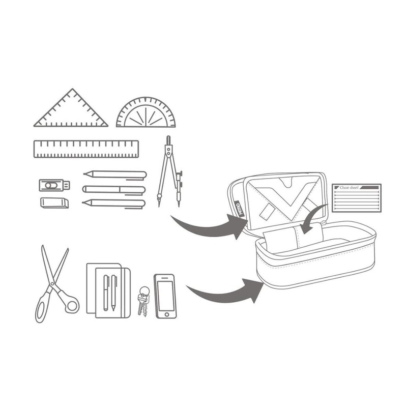 - Spacious case with large main compartment for pens, markers, scissors, compasses etc., an organiser in the lid that keeps things tidy and organised