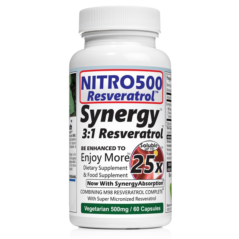 - Nitro Synergy combines two trans-resveratrols into one vegetarian capsule.