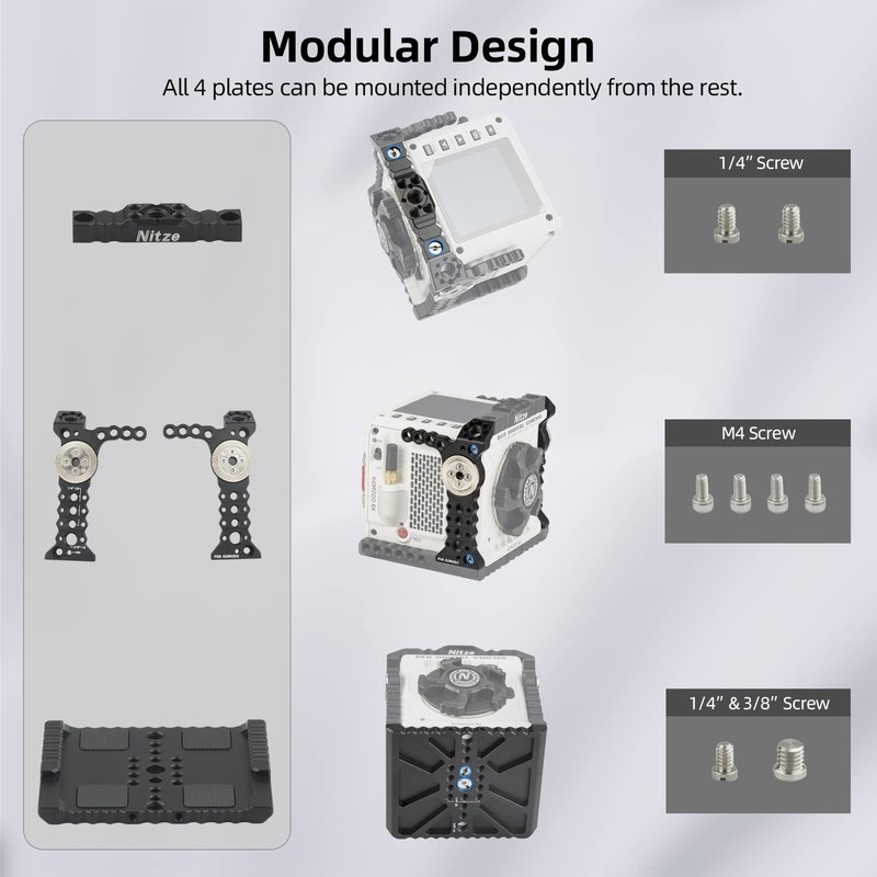 - Specialised camera cage: Nitze T-R02A camera cage made of aluminium alloy has been specially developed for the Red Komodo 6K camera.