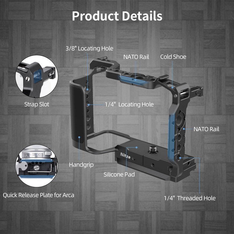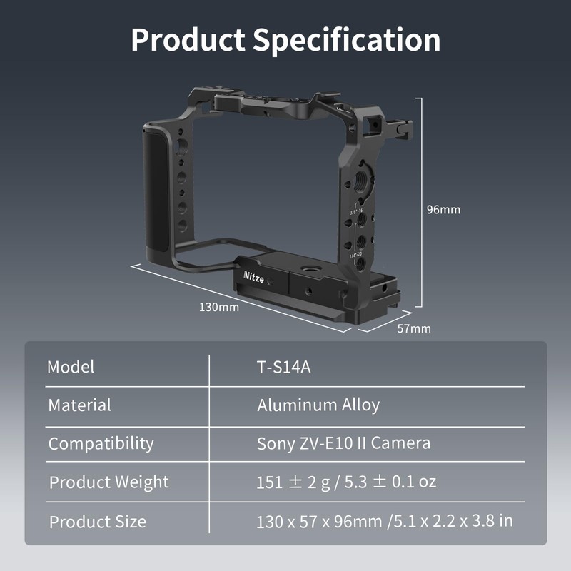 - DESIGNED FOR SONY ZV-E10 II: The Nitze T-S14A aluminum alloy cage provides all-round protection for the Sony ZV-E10 II camera while providing attachment points that do not conflict with the camera's controls