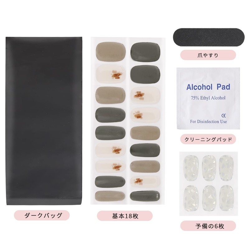NIUANIUA Semi-cured Gel Nail Seal, Gel Nail Seal, Curing Type, Nail Seal, Gel Nail Stick, Set of 24 Gel Nail Seals, Green Beige, Easy to Apply and Remove