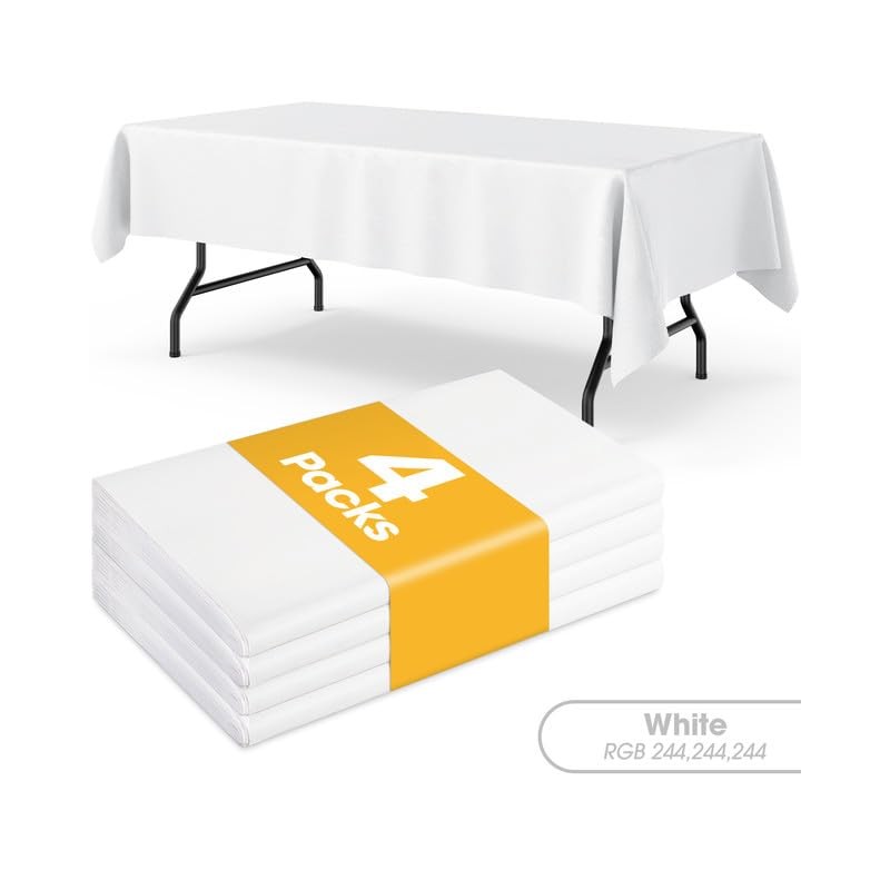 Niuara Niuara White Plastic Table Cloth Rectangle Table 4 Pack, 54'108' Tablecloth for 6ft Tables, Table Cloth for Disposable Use, Table Cover for Holiday Party, Gathering