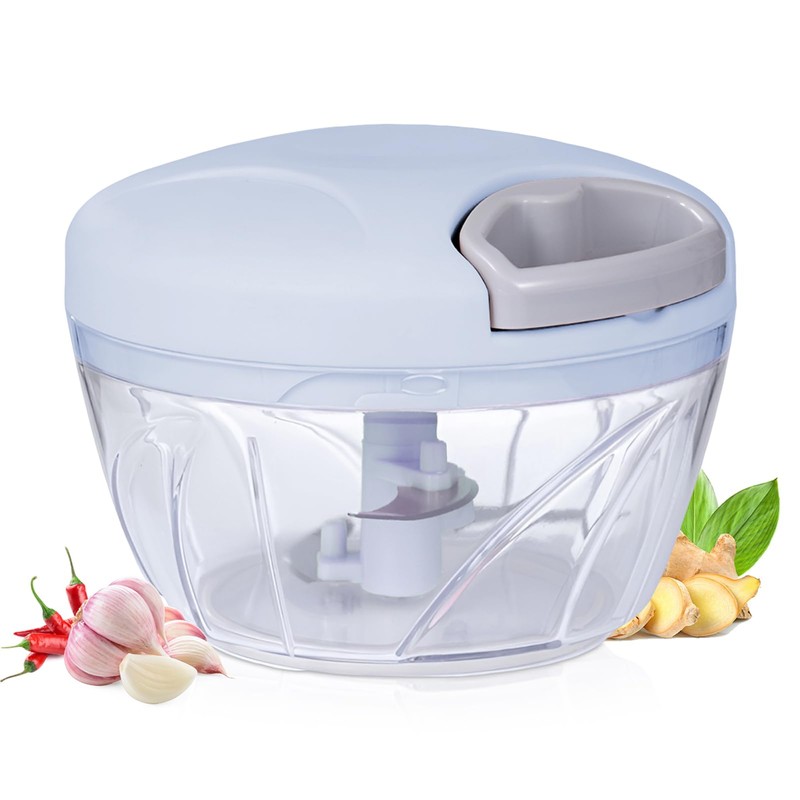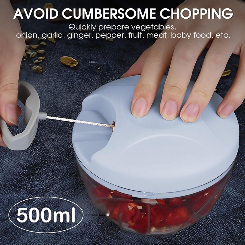 NIUAWASA 500ml Small Onion and Garlic Mincer Chopper Vegetable Cutter Manual Hand Pull String Fruit and Veggie Chopper Portable for Ginger Chili Pepper Meat Salad - Blue