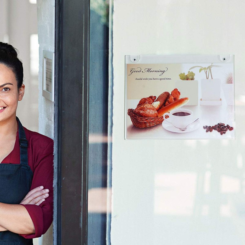 - EASY TO SWITCH OUT- Paper can be taken in and out easily on a daily basis without removing frame from the wall.The wall sign holder is a simple one piece of acrylic heat folded at the bottom while it is open around the top and sides.