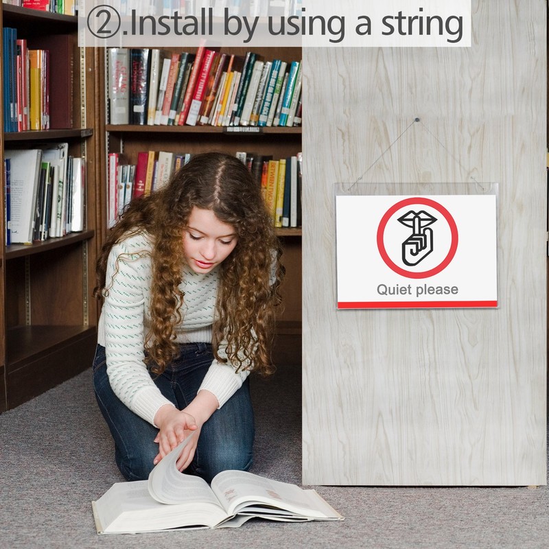 - EASY TO ASSEMBLE- You can install the wall mounted sign holder by using the Included Screws and Anchors,or hang it through the pre-drilled holes by using a string,or just stick it by using our Free Double Sided Adhesive Strips on wall without drilling.