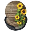 Niukom 6 Pcs Autumn Sunflowers Wooden Board Leather Coasters for Drinks with Holder Coaster Sets Drink Table Cup Coasters for Living Room Kitchen Coffee Decor
