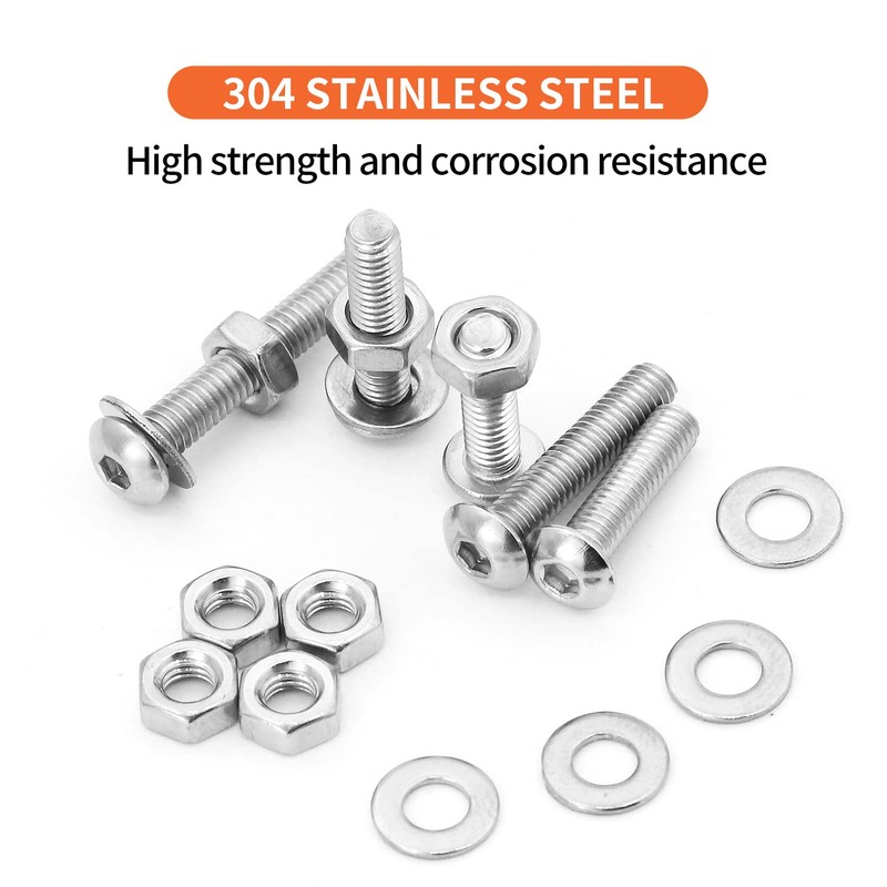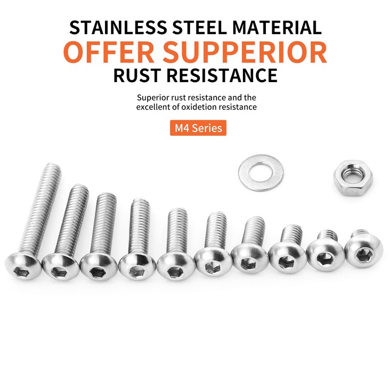 - Package Included: 400PCS, M4 Button Head Socket Cap Screws Bolts Nuts Flat Washers Assortment Kit