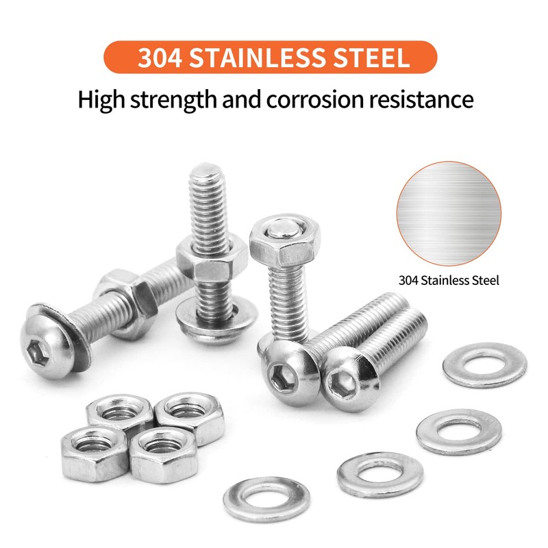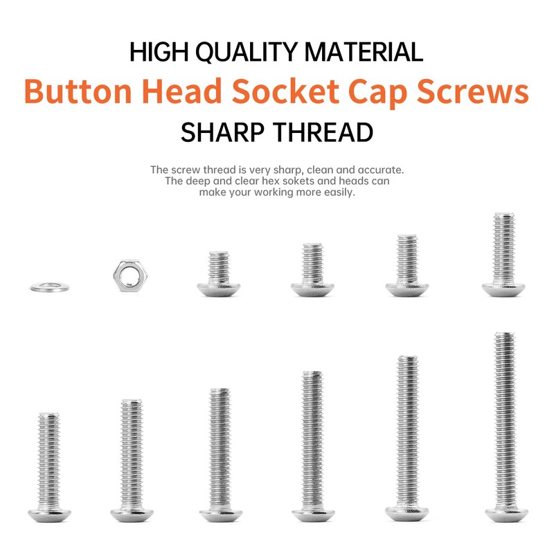- M4 x 5 6 8 10 12 14 16 18 20 25mm Button Head Socket Cap Screws Bolts And Nuts Flat Washers Assortment Kit, 304 Stainless Steel, Metric Machine Fully Thread, Allen Hex Drive NIULUNBAO