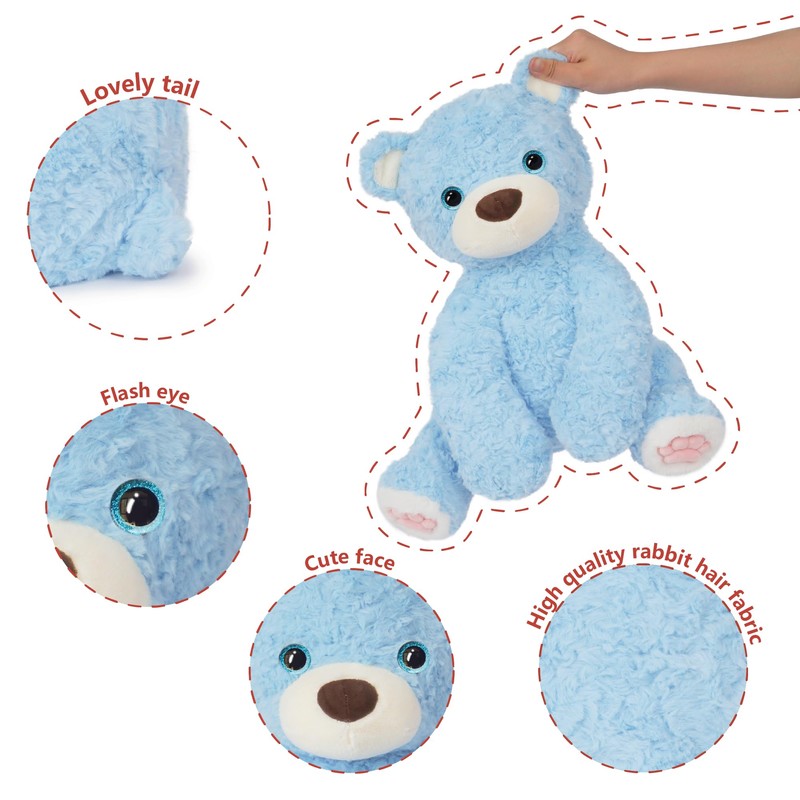 - Huggable Design Weights: Offer 3.5LB/1.5KG weighted design makes every hug more realistic and always comfortable while hugging and help calm irritability. This Weighted Blue Bear Stuffed Animal helps manage stress and its body size is great for cuddling