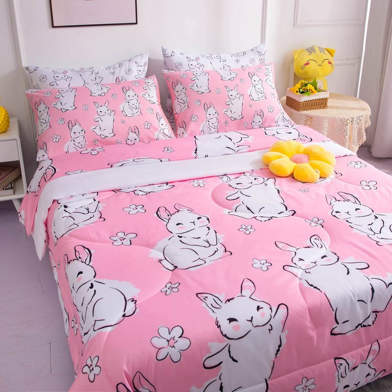 - ❤🐇❤Great Gift:This 7 Piece Cartoon Bunny Comforter Set is very suitable for girls kids teens who like the theme of bunny.