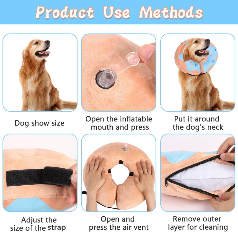 - Easy to Use: The inflatable recovery collar for dogs comes with a quick inflatable nozzle and adjustable strap that can be resized at will, allowing you to put a collar on your pet in seconds