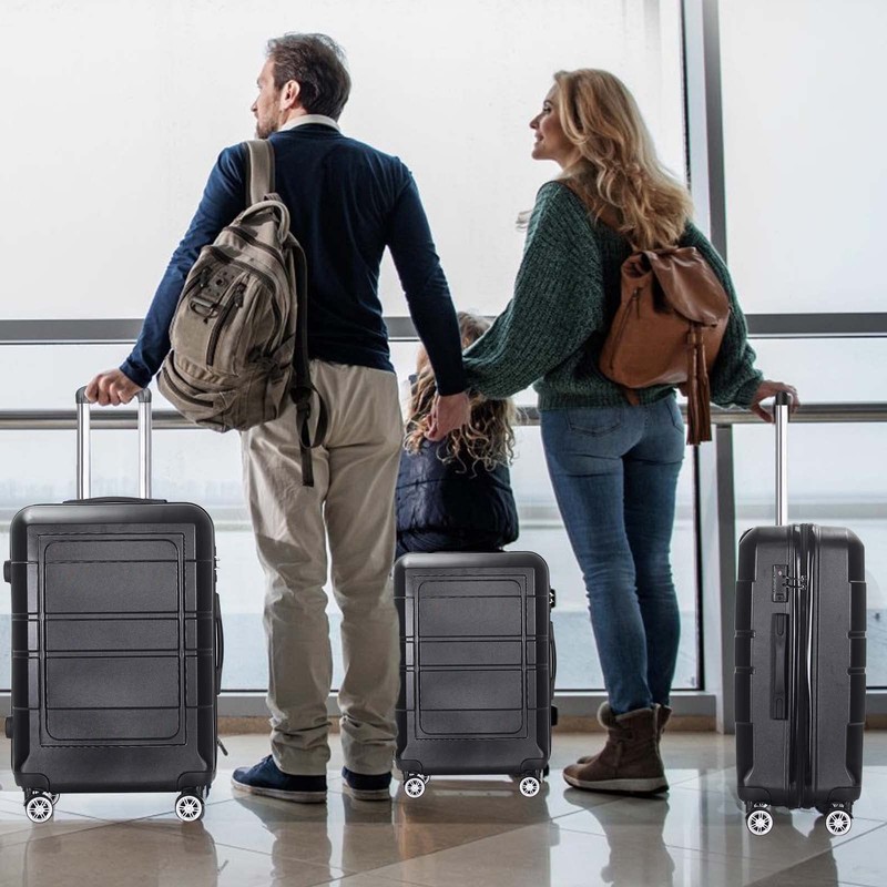 NIUTA 3 Piece Luggage Sets TSA Lock and 20"/24"/28"-Black, 20/24/28