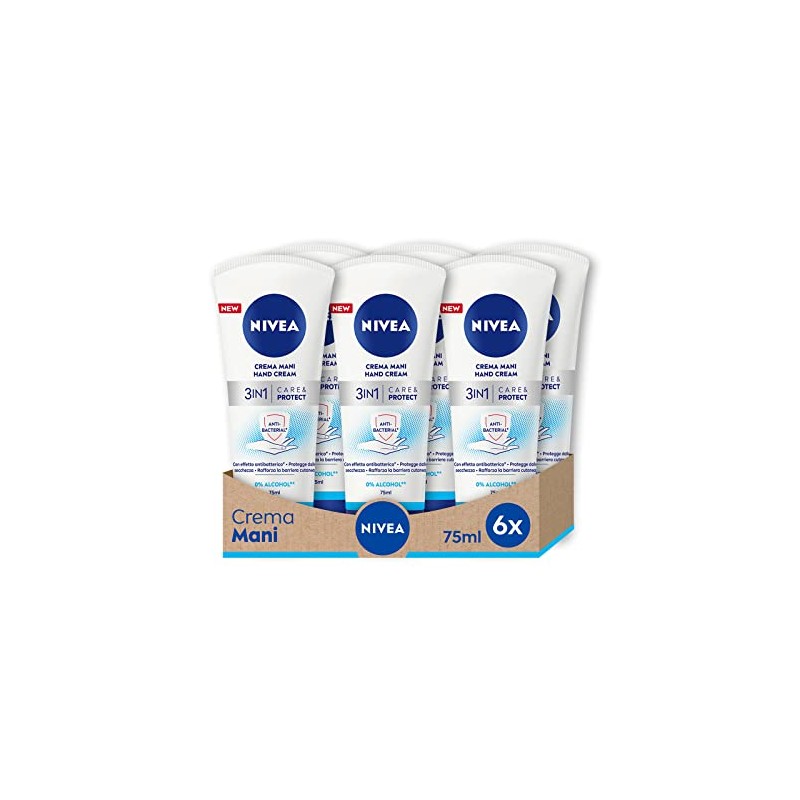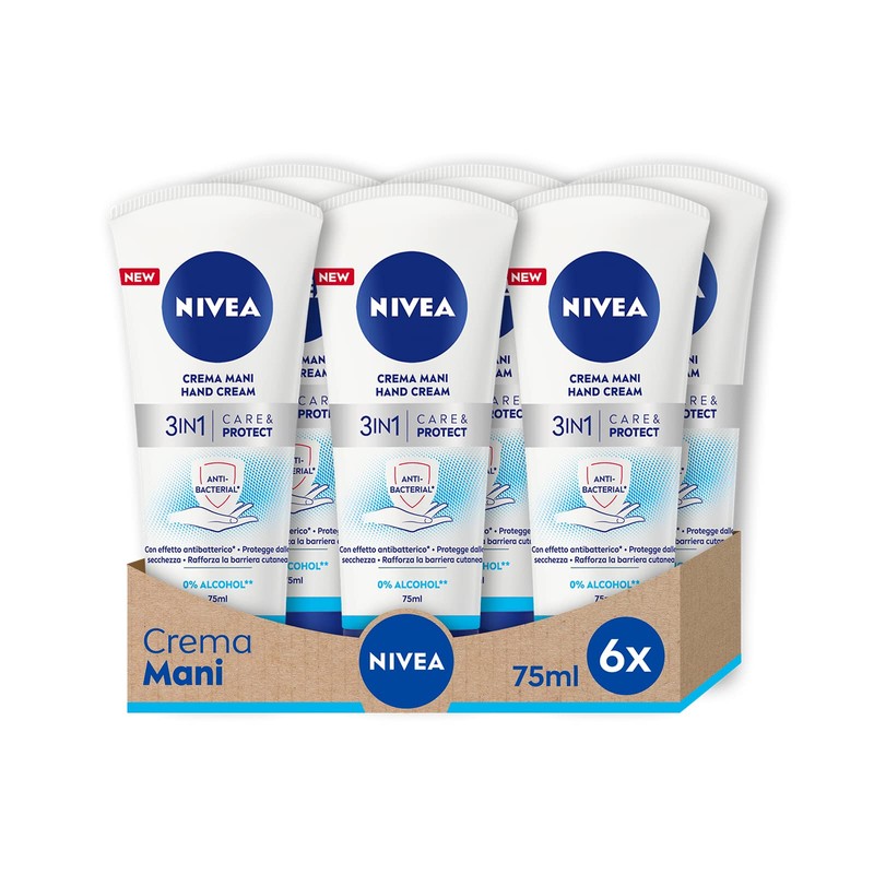 Nivea 3-in-1 Care & Protect Hand Cream with Antibacterial Effect, Pack of 6