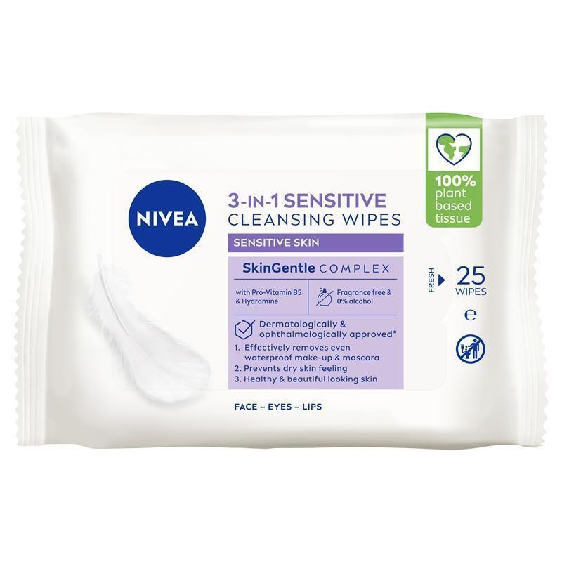 NIVEA 3in1 Sensitive Cleansing Wipes 25 Pack