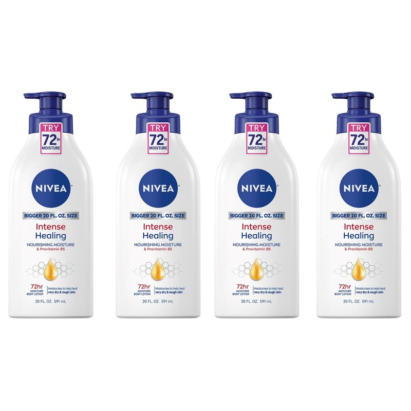 NIVEA 4 Pack NIVEA Intense Healing Body Lotion 72 Hour Moisture Dry Skin Size 20 Oz