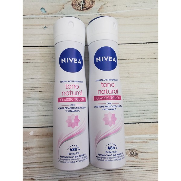 Nivea Aclarado Natural Classic Touch Aerosol 150ml Spray Antitraspirante 48h Protecion con Aceite de Aguacate / Palta y Vitamina C