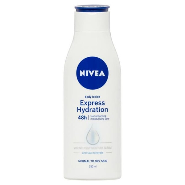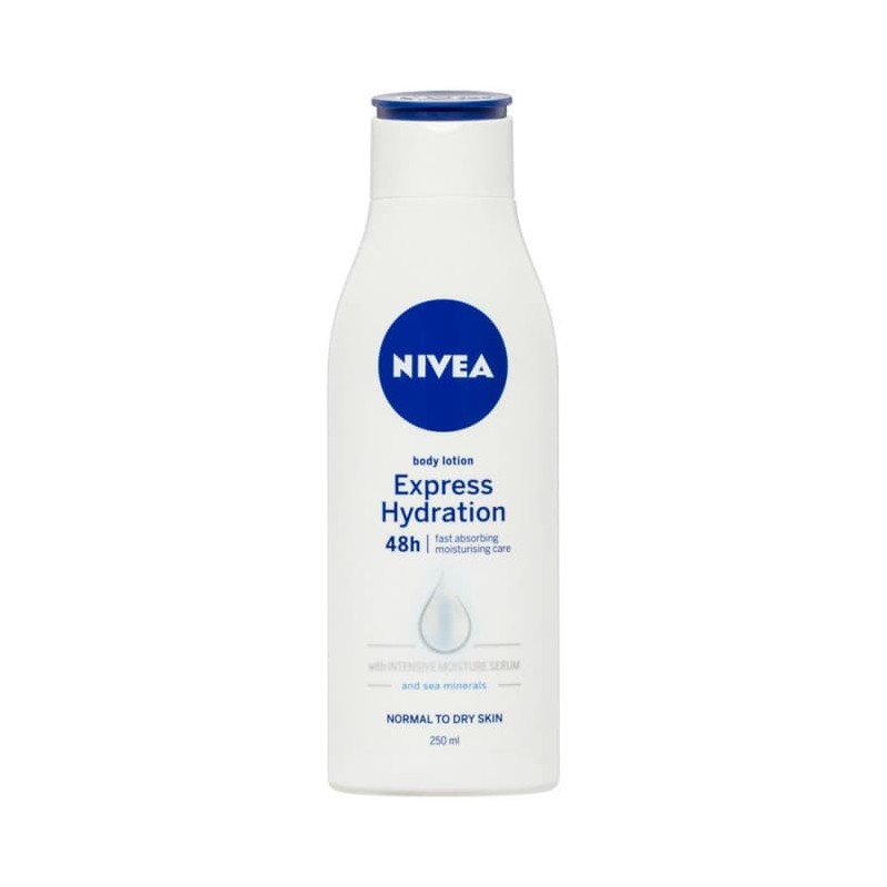 - Nivea Express Hydration body lotion is infused with the Nivea Intense Moisture Serum and sea minerals.