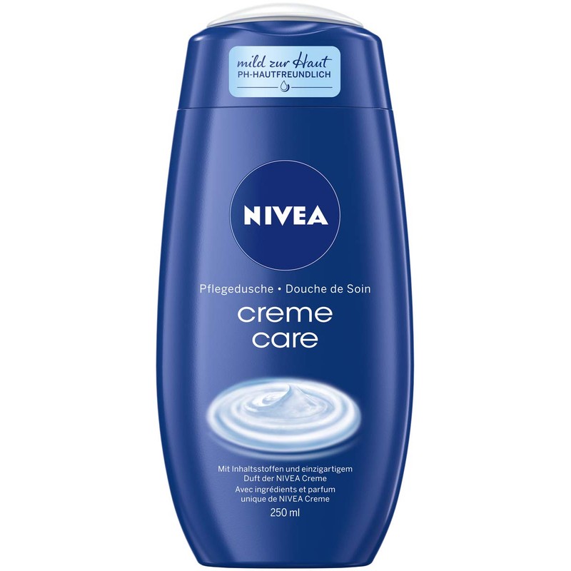 - Practical pack - Nivea Creme Care Shower Gel (250 ml), formula free from solid microplastic particles according to UNEP definition, item number 83625.