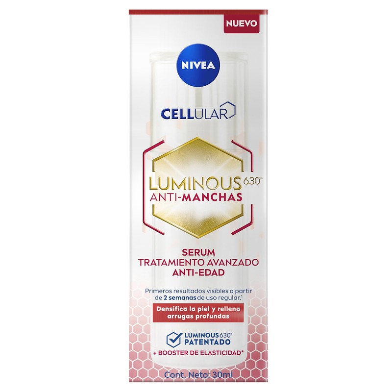 NIVEA Cellular LUMINOUS630 Anti-manchas Serum Facial Anti-Edad (30 ml), Crema Facial Enriquecida Con Ácido Hialurónico y Colágeno, para una Piel Luminosa sin manchas por Edad, Solares ni Hormonales