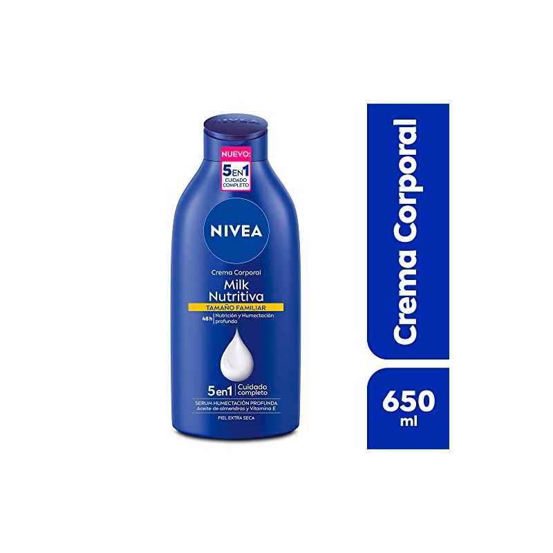 NIVEA Crema Corporal Humectante Body Milk Nutritiva (650 ml) - 48 horas de Humectacin Profunda con Aceite de Almendras - Ideal para Piel Extra Seca