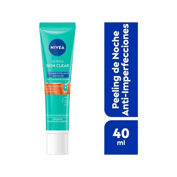 Nivea Derma Skin Clear Peeling Exfoliante Antiimperfecciones, Reduce Poros, Tratamiento Nocturno, 40 ml