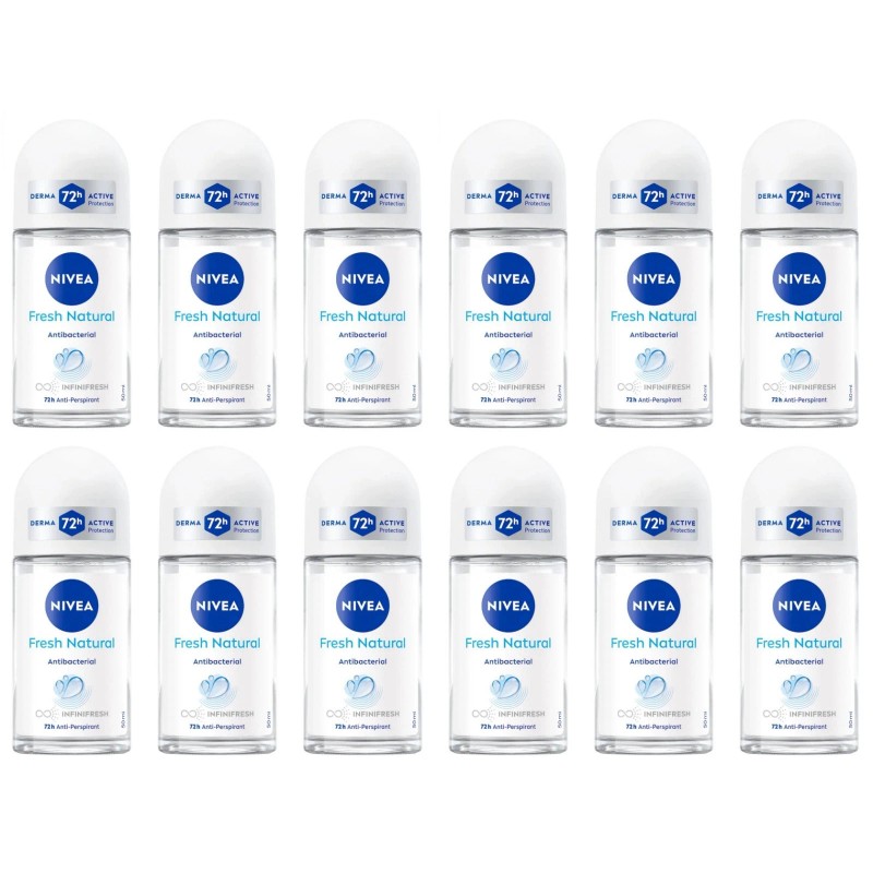 12 PK NIVEA Fresh Natural Roll-On Deodorant 72H Anti Bacterial 50ml