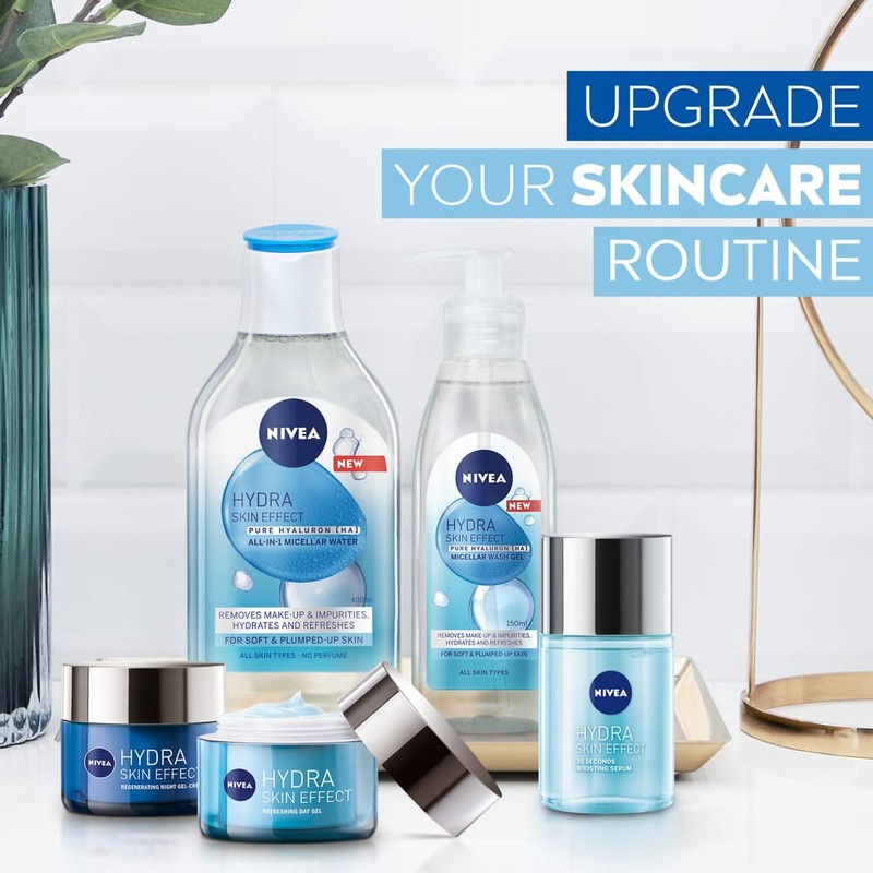 NIVEA Hydra Skin Effect Micellar Water (400ml), Effective Yet Gentle Waterproof Make-Up Remover, Cleansing Water Made with Pure Hyaluronic Acid and Micellar Technology