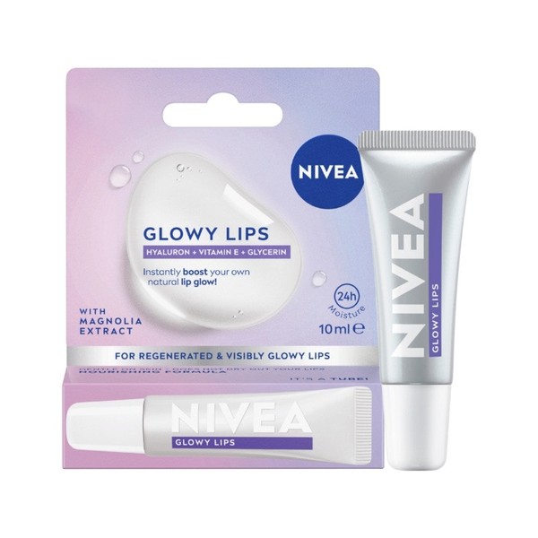 NEW NIVEA GLOWY LIPS instantly boosts your own natural lip glow. For regenerated & visibly glowy lips with 24 moisture.