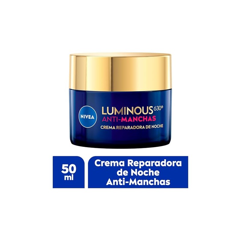 NIVEA Luminous630 Anti-Manchas Crema Reparadora de Noche (50 ml) - Enriquecida con Ácido Hialurónico para una Piel Luminosa sin Manchas por Edad, Solares ni Hormonales
