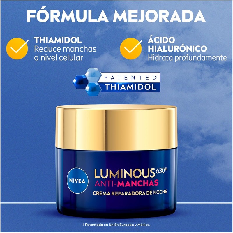 🌙✨ NIVEA Luminous630 Anti-Manchas Crema Reparadora de Noche 50ml: Crema anti-manchas con Luminous630 y Ácido Hialurónico. Reduce manchas solares, de edad y hormonales, hidrata y deja la piel más luminoso y uniforme. 🌟💧