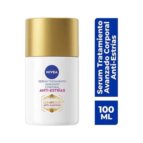 ✨ ¡Transforma tu piel con el NIVEA Luminous630 Serum Aceite Corporal Anti-estrías de 100ml! 💖 Reduce visiblemente estrías en 2 semanas y previene nuevas. Fórmula patentada con Luminous 630 para tono uniforme y 48h de hidratación.