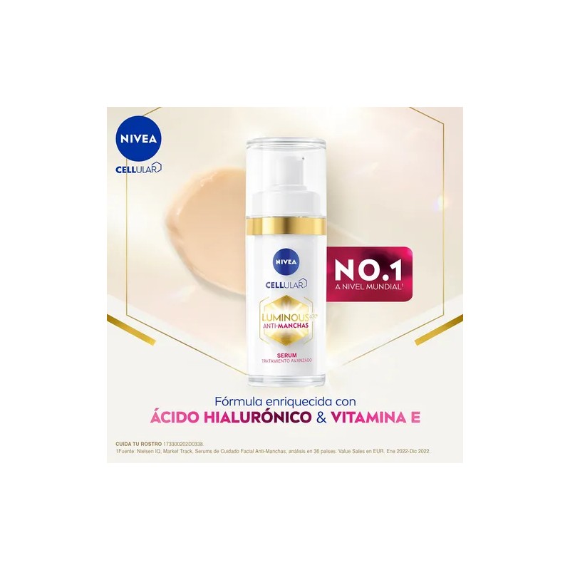 - Embárcate en la experiencia anti-manchas más avanzada con el Serum Facial Anti-Manchas Tratamiento Avanzado NIVEA Luminous 630 y disfruta de una piel luminosa y uniforme.