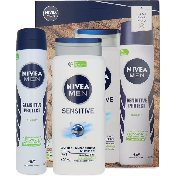Nivea Men Gift Set Sensitive 3in1 Shower gel & quick dry Anti-perspiran