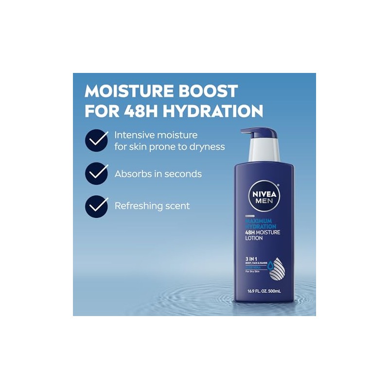 NIVEA - NIVEA Men Maximum Hydration Lotion for Dry Skin, 3 in 1 Body, Face and Hands Sea Minerals 16.9 Ounce. 💎 Fórmula premium para resultados visibles y duraderos. Ingredientes naturales seleccionados y testado dermatológicamente. ⏰ Oferta por tiempo limitado. Ideal para quienes buscan lo mejor en calidad y estilo. Producto auténtico con satisfacción total asegurada. ¡No te quedes sin el tuyo y aprovecha esta oportunidad única!