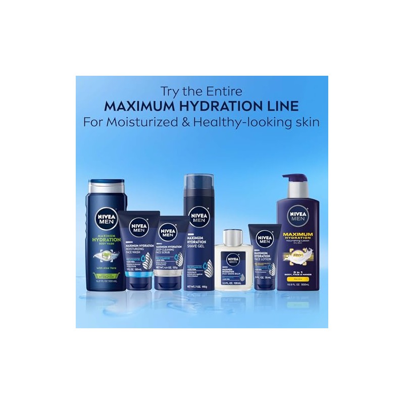 NIVEA MEN Maximum Hydration Deep Cleaning Face Scrub deeply cleanses without drying to leave the skin feeling hydrated. This moisturizing face wash is specially formulated by skincare experts for men. This facial scrub for men is enriched with Aloe Vera and Provitamin B5 to help support the skin's natural moisture barrier. This exfoliating face scrub deeply cleanses skin to unclog pores and helps clear away impurities, excess dirt and oils. NIVEA MEN Maximum Hydration Deep Cleaning Face Scrub is also formulated with fine scrub particles to help smooth and refine the skin's complexion by removing dead skin cells. A great addition to your pre-shave prep, this NIVEA MEN face scrub helps to soften beard hair and stubble to improve razor glide when used before shaving. This face scrub for men is dermatologically tested for skin compatibility. An exfoliating face wash is a key part of a skincare routine, and NIVEA MEN Maximum Hydration Deep Cleaning Face Scrub pairs well with NIVEA MEN Maximum Hydration Face Lotion with Broad Spectrum SPF 15 Sunscreen as part of a daily skincare regimen. NIVEA MEN is a trusted leader in skin care products, with more than 130 years of expertise.