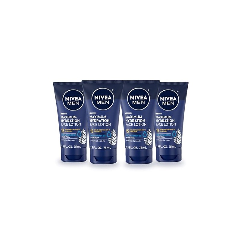 - Includes four (4) 2.5 fluid ounce tubes of NIVEA MEN Maximum Hydration Face Lotion with Broad Spectrum SPF 15