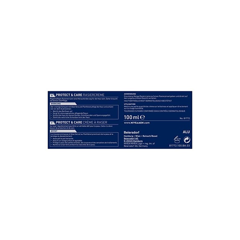 - Praktischer Lieferumfang – NIVEA MEN Protect & Care Rasiercreme, 1 x 100 Tube, Artikelnummer 81772