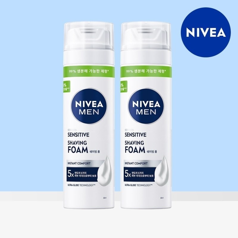 Nivea Men Sensitive Shaving Foam 200ml x 2 / 니베아 맨 센서티브 쉐이빙 폼 200ml 2개