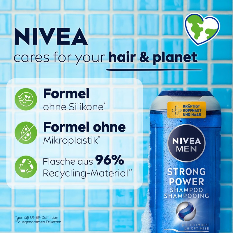 - Strong power - With sea minerals, the NIVEA MEN Strong Power Shampoo gently cleanses and strengthens weak and flat hair noticeably with every use.
