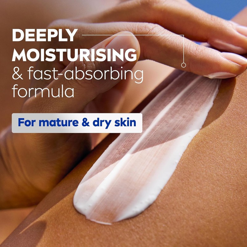 NIVEA Q10 60+ Body Lotion is a rich, anti-aging formula designed to deeply nourish and provide lasting hydration for up to 48 hours.