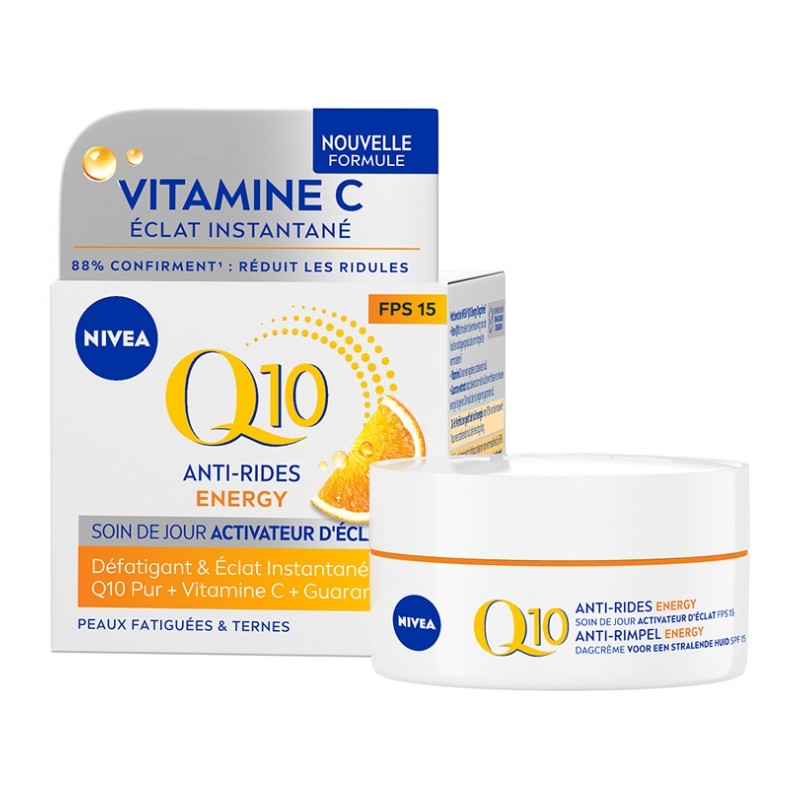 Nivea Q10 Anti-Wrinkle Energy Radiance Activating Day Cream SPF15 50 ml is a face cream designed to combat the signs of aging and revive tired, dull skin. It restores energy, reduces fine lines and prevents the first signs of aging, leaving skin radiant and visibly younger-looking.