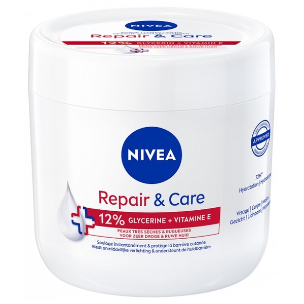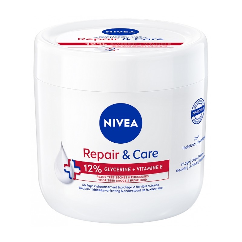 Nivea Repair & Care 12% Glycerin + Vitamin E 400 ml is ideal for very dry, rough skin, providing deep, long-lasting hydration.